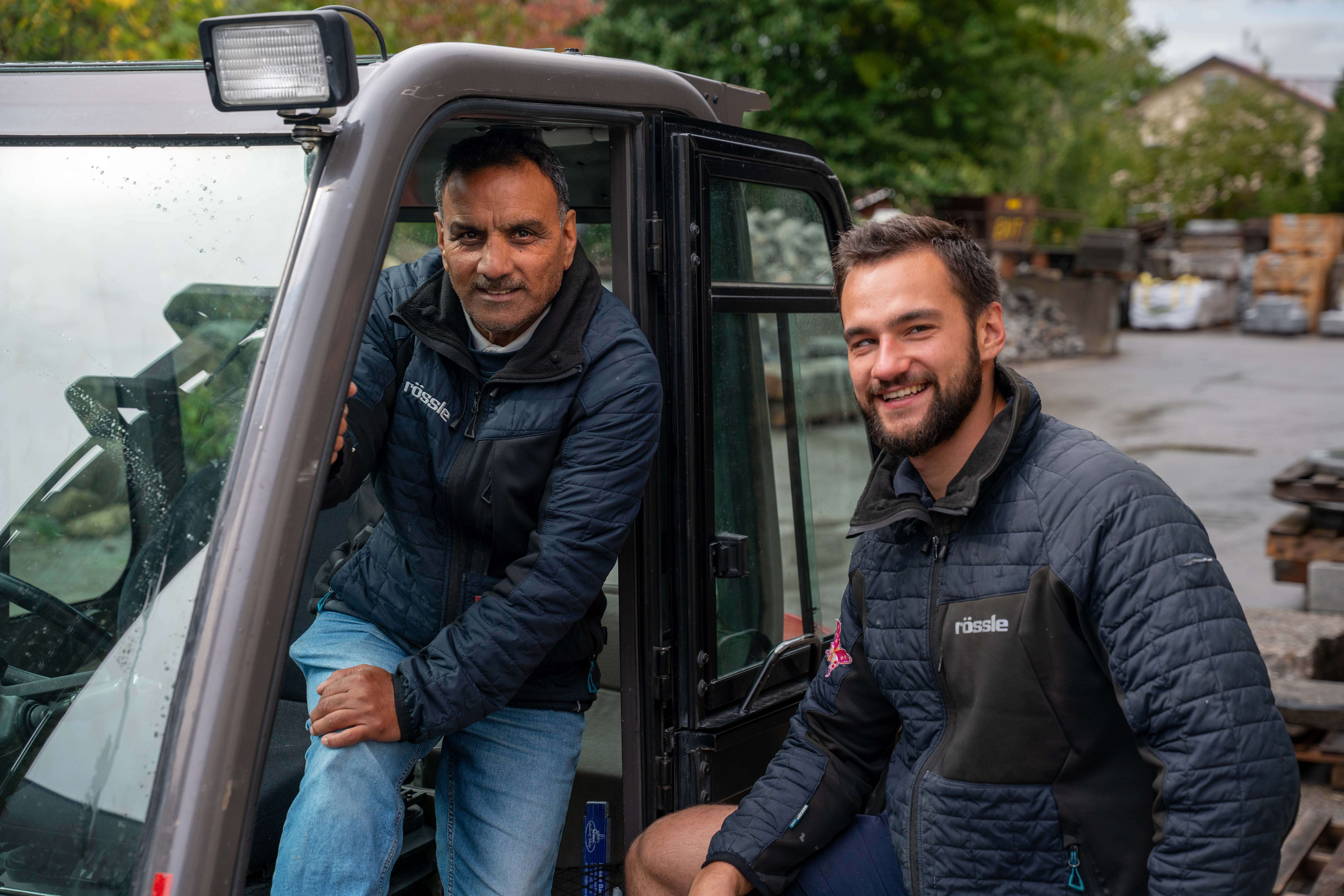 Rouven und Jaswant sind unser Team Stein. Auch wenn sie nicht direkt etwas mit unserem Teichbereich zu tun haben, sind sie doch unverzichtbar. Rouven kennt jeden Naturstein auf dem Firmengelände persönlich und behält auch im stressigen Sommer den Überblick. Jaswant ist der älteste Mitarbeiter im Team. Seit über 30 Jahren ist er Herr über die Stapler und hilft so bei allen großen Bestellungen mit seinem präziesen Fahrstil und seiner ruhigen Ausstrahlung.