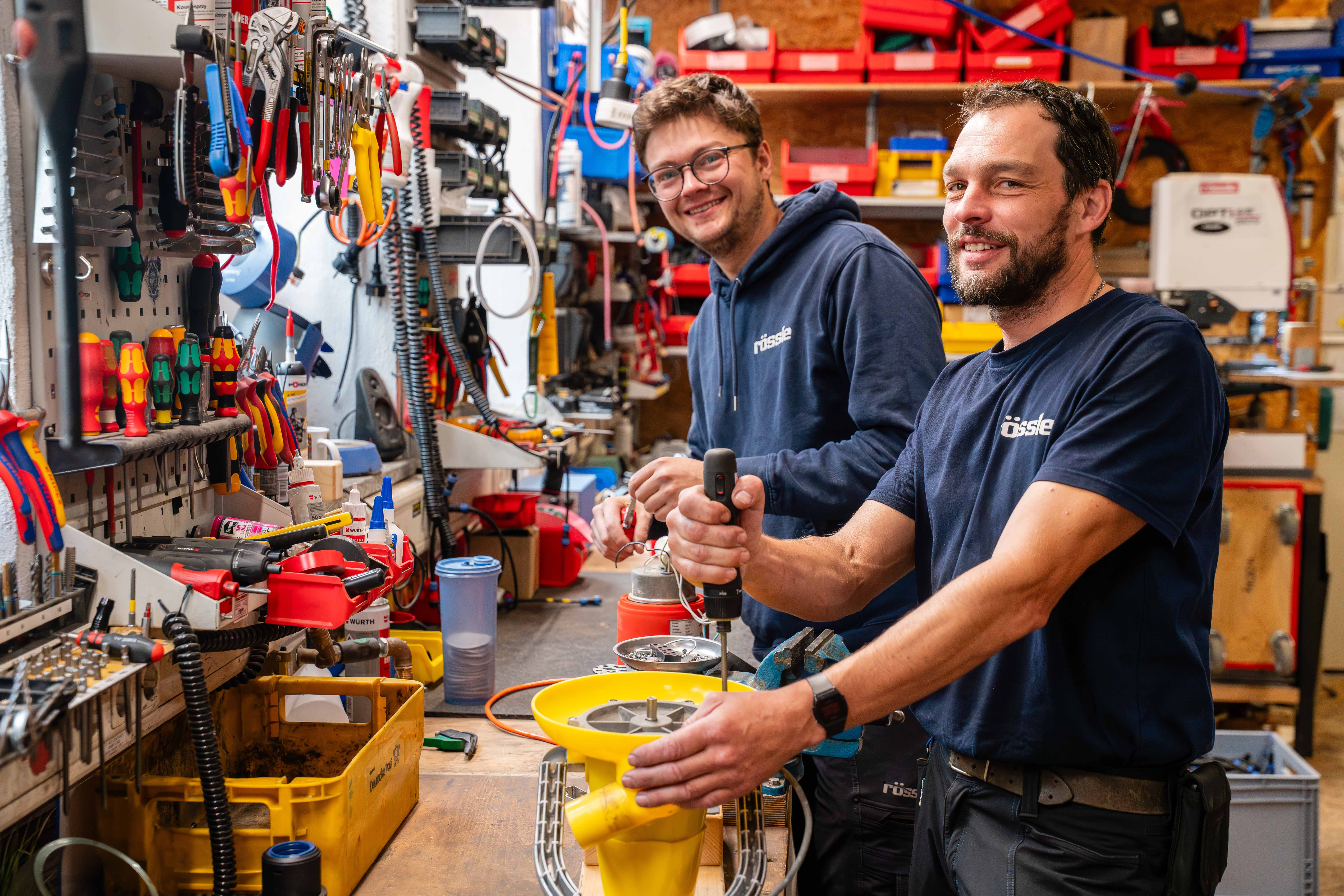 Deshalb sind unsere Mitarbeiter unser wertvollstes Kapital, ohne das wir uns nicht weiterentwickeln könnten. Unser Vorteil als Familienunternehmen ist, dass neben der familiären Arbeitsatmosphäre eine enge Bindung und ein hoher Vertrauensgrad zwischen unseren Mitarbeitern und zu den Chefs besteht. Dies schafft ein Gefühl der Zugehörigkeit und des Zusammenhaltes, und wirkt sich positiv auf unser Arbeitsklima aus. Zudem steht unser Team stets im engen Austausch, was schnelle Entscheidungen begünstigt und uns eine große Agilität und Flexibilität ermöglicht. Hubert, Sohn des Firmengründers Georg Rössle, und Renate Rössle führen die Rössle AG in zweiter Generation. Zudem steht die Zukunft bereits in den Startlöchern: mit den Söhnen Leonhard und Georg ist auch die dritte Generation bereits ins Unternehmen eingestiegen. Derzeit besteht unser Team neben der Familie Rössle aus acht weiteren Mitarbeitern und zwei Auszubildenden. Besonders stolz sind wir auf die „Hand-in-Hand“-Mentalität in unserem Team. Natürlich hat jeder Mitarbeiter seine eigenen Aufgabenbereiche, doch ist Unterstützung nötig, hilft jeder jedem. Ein Team voller Allrounder durch und durch.
