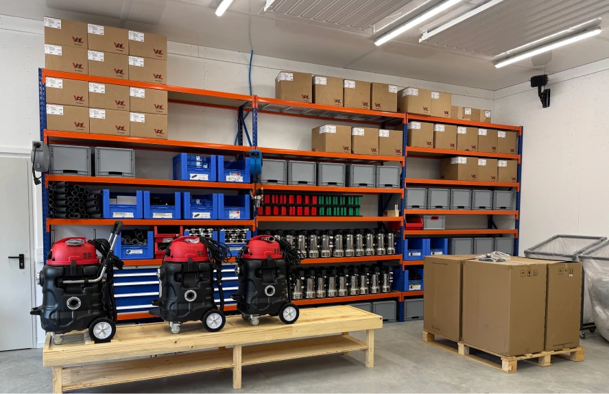 2025Vergrößerung der Montagehalle der SaugerDie immer größere Nachfrage der Sauger wurde für die alte Produktion zu klein. Anbau innerhalb der Werkshalle um 180 QM um zukünftig auf 2 Linien Sauger produzieren zu können.