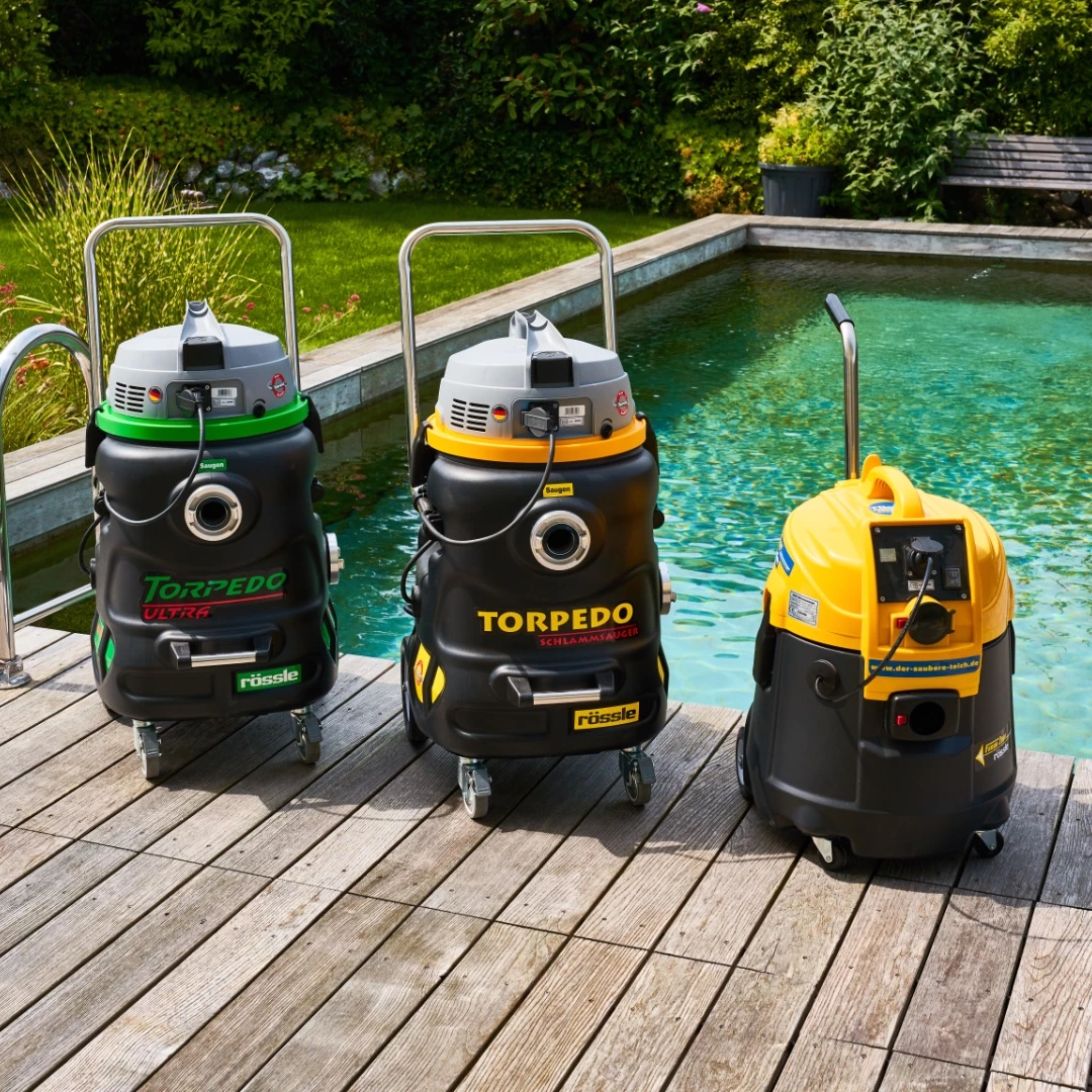 Teichschlammsauger haben sich generell zur Grundausstattung der Teichreinigung etabliert und sind in 25 Jahren im Hause RÖSSLE zur Perfektion gereift.