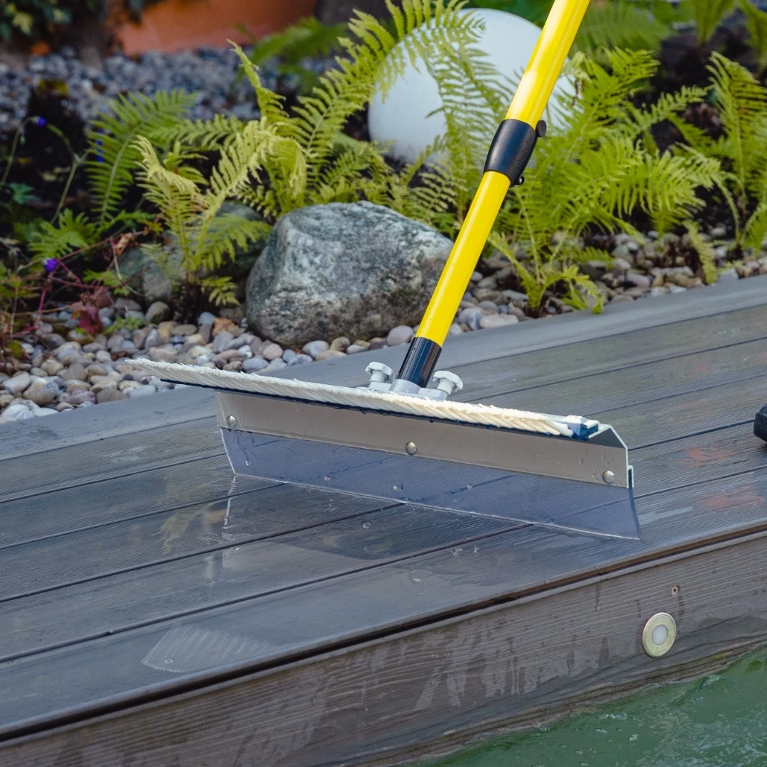 SCHMUTZ, FLÜSSIGKEITEN UND CO. EINFACH WEGSCHIEBEN! Wenn Schmutz und Flüssigkeiten entfernt werden müssen, ersetzt der Multi-Schieber herkömmliche Besen und Gummischieber und liefert mit seiner Vielseitigkeit das gewünschte Ergebnis. Die Beseitigung von Wasser und festen Verschmutzungen, wie Laub oder Dreck, wird durch die wechselseitig einsetzbaren Schiebeleisten auf jedem Untergrund enorm erleichtert. Der Multi-Schieber ist die perfekte Ergänzung zu unserem Teichsortiment. - Zur Beseitigung von Verschmutzungen in fester und flüssiger Form - Teleskopierbare GFK-Stange - Durch die Schutzschild-Form der Schiebefläche werden Flüssigkeiten in Schieberichtung geleitet - Auch für Schnee geeignet Rössle Multi-Schieber, 50cm Breite, einzeln auswechselbare Leisten, teleskopierbare GFK Stange, kompakte Verstaumöglichkeit durch Schnellverschluß zum Abnehmen des Schiebeelements. Der Multi-Schieber ist für die Beseitigung von Flüssigkeiten, Ölbindemitteln, Steinen, Schnee oder Verschmutzungen wie Metall, Glas, Spänen, Laub, etc. geeignet. Bitte beachten: Der Multischieber wird in 2 Paketen versendet. 1 x Rohr, welches die Teleskopstange enthält 1 x Karton mit dem Multi-Schieber Aufsatz Diese können an unterschiedlichen Tagen angeliefert werden.