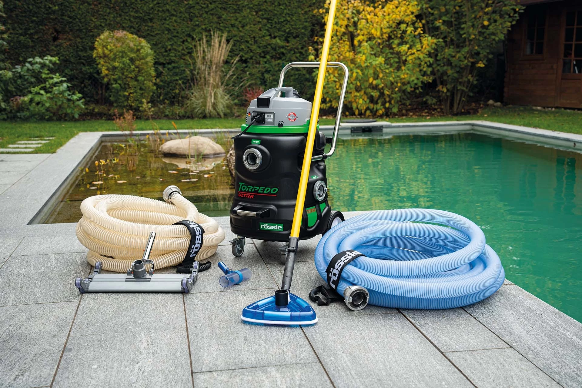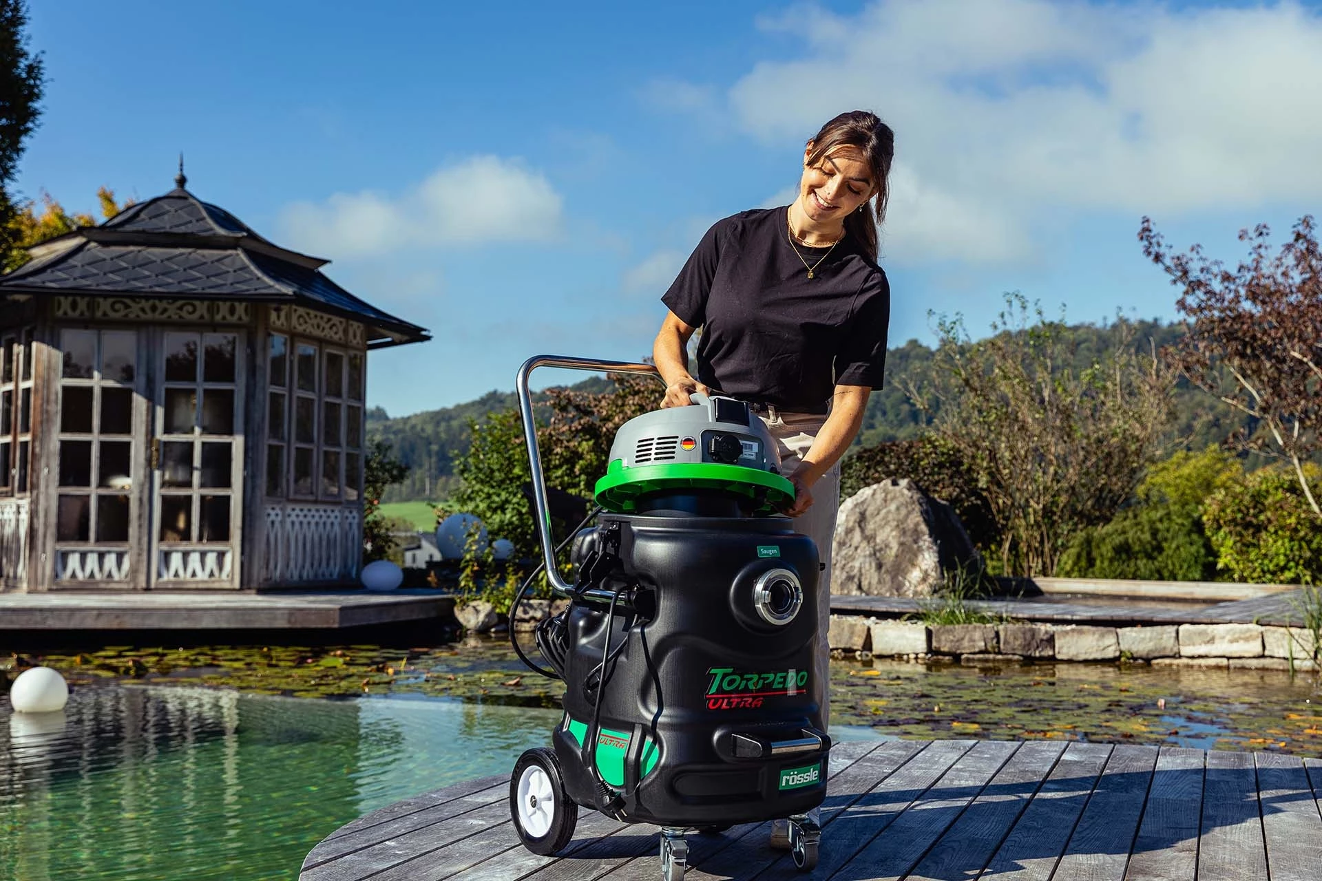 Der Teichschlammsauger TORPEDO ULTRA ist für den täglichen Einsatz der Profis entwickelt worden. Im Vergleich zum Teichschlammsauger TORPEDO verfügt der TORPEDO ULTRA über nochmals stärkere Aggregate mit höheren Leistungswerten, die das Wasser bei sehr geringer Geräuschentwicklung über 50 mm Schläuche aus dem Teich an den gewünschten Abflussort befördern. Die kompakte Bauart und das stabile Fahrwerk machen das Bewegen auch über Gelände einfach. Zudem wurde 2020 der Wasserströmungsverlauf optimiert und der Restentleerungsschlauch überarbeitet. Zusammen mit der stufenlos verstellbaren Saugleistungsregulierung ergeben die Optimierungen ein Maximum an Flexibilität im Einsatz. Für eine größere Reichweite des Gerätes können die 12 m langen Schläuche mittels Verlängerungen auf jeweils 24 m verdoppelt werden. Der TORPEDO ULTRA ist das optimale Equipment für die Reinigung größerer Teiche, Naturpools und Badegewässer. Vorteile des TORPEDO ULTRA Teichschlammsaugers: Robuste Bauweise Problemloses Abpumpen über Höhen und Distanzen Stufenlos verstellbare Saugleistungsregulierung Kompatibel mit dem GFK Vorabscheider ULTRA Im Preis enthalten: TORPEDO ULTRA Teichschlammsauger Saugschlauch 12 m Ablaufschlauch 12 m GFK Teleskopstange 2,5 - 5,0 m Dreieckabsaugbürste, 50 mm Gelenkbodenreiniger Skelleton, 50 mm Saugdüse, rund, 50 mm