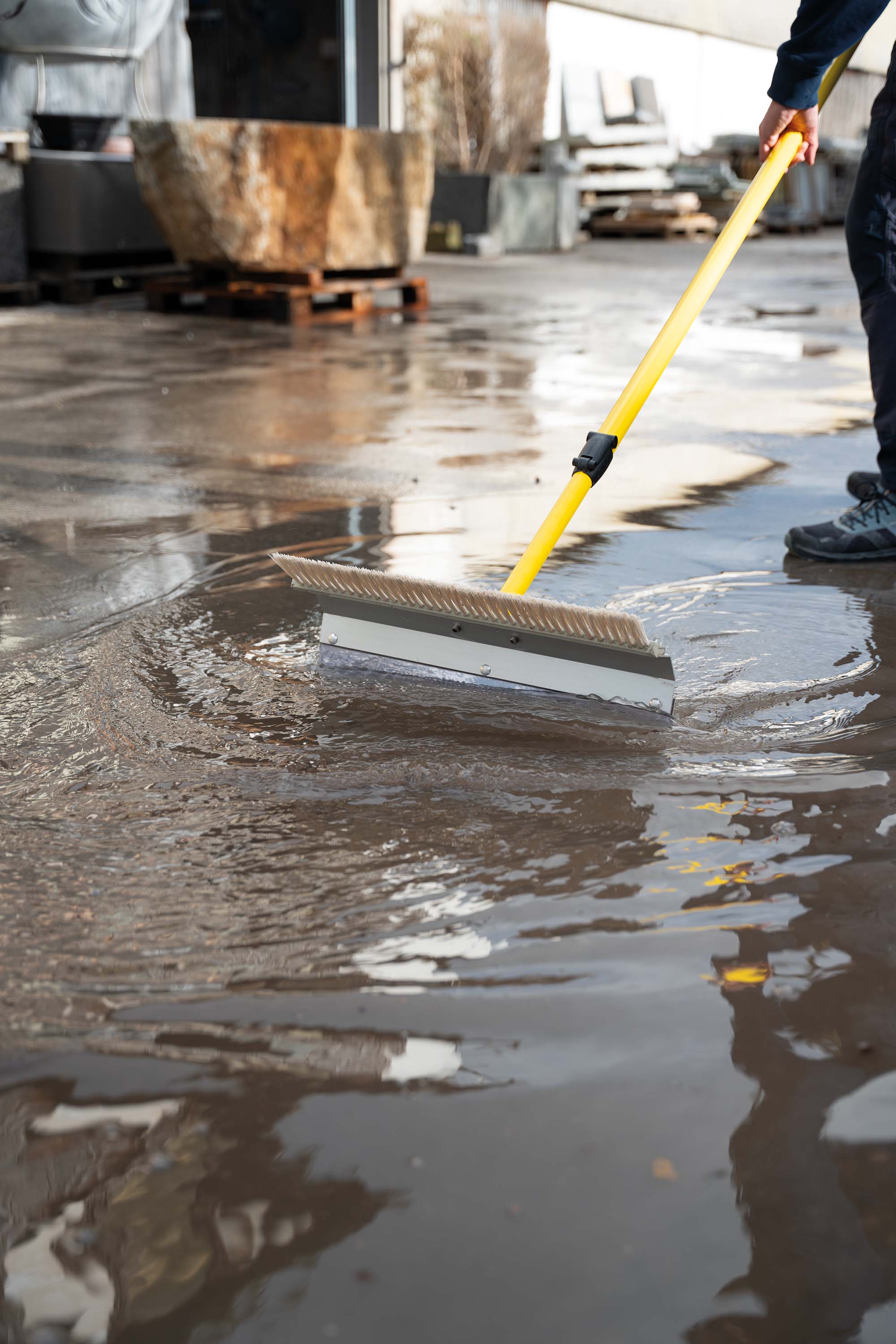 Der Multi-Schieber ist für die Beseitigung von Flüssigkeiten, Ölbindemitteln, Steinen, Schnee oder Verschmutzungen wie Metall, Glas, Spänen, Laub, etc. geeignet.